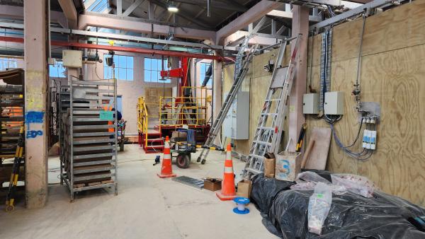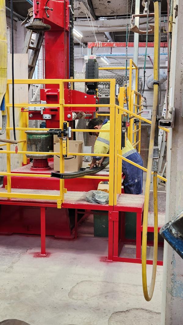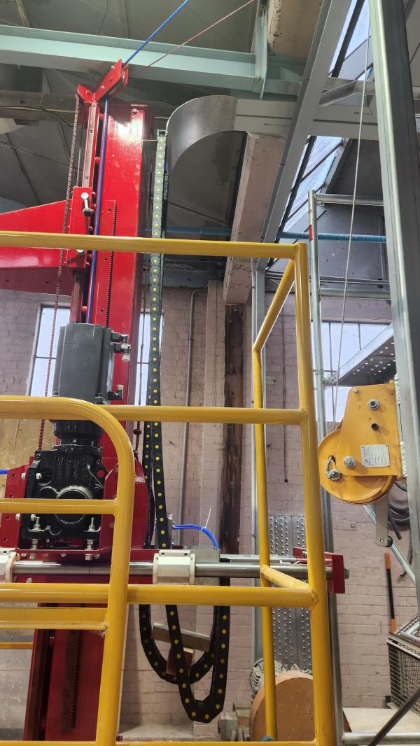 Due to the size of the lathe, scaffolding was required